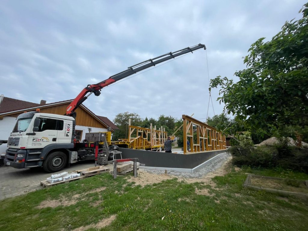Ein weiterer Vorteil der Holzständerbauweise ist die minimierte Bauzeit durch hohe Vorfertigung in unserer Betriebshalle.